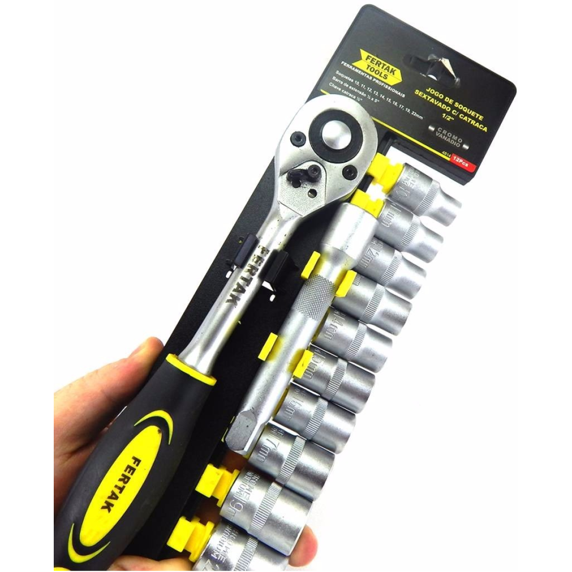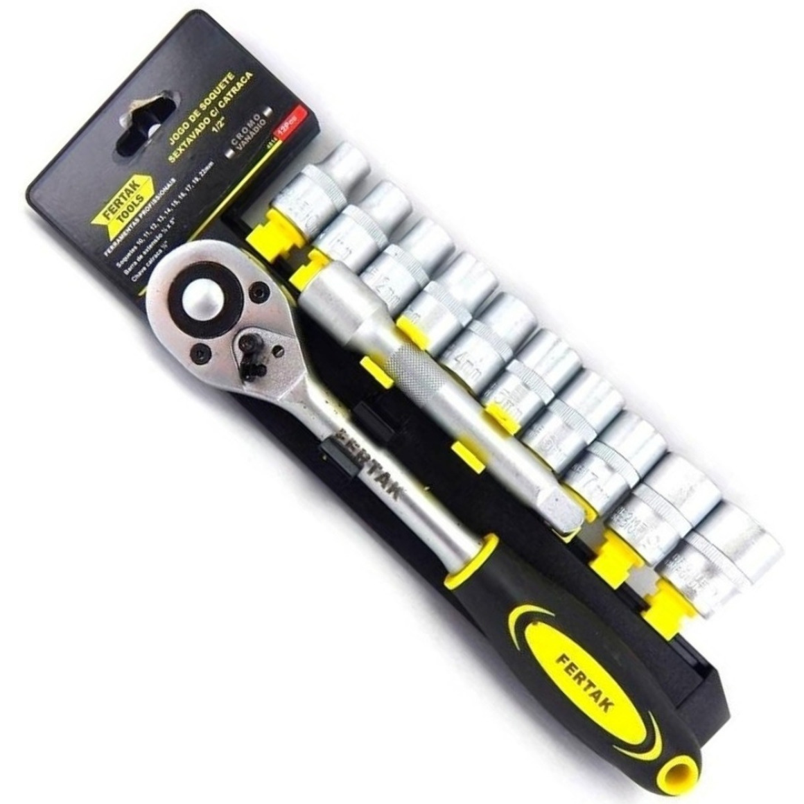 JOGO SOQUETE SEXTAVADO CATRACA CROMO VANADIO 3/8" (10-22MM) 12PÇ FERTAK 4815